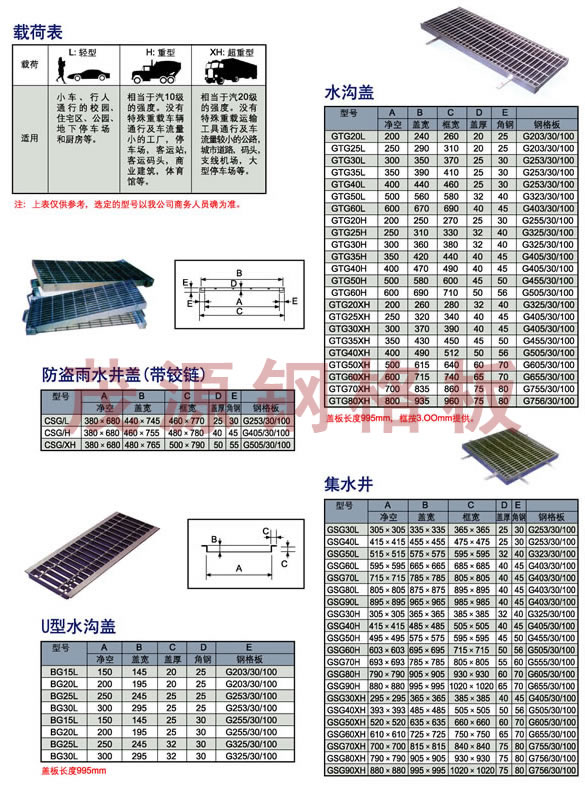 | 采用鋼格板設(shè)計(jì)制造,廣泛用于城市道路、廣場、園林、碼頭、機(jī)場、停車場、公路、鐵路、工業(yè)工程等各類工業(yè)民用建筑。 產(chǎn)品特點(diǎn): 外形美觀:線條簡捷,銀色外表,現(xiàn)代潮流。 最佳排水:漏水面積達(dá)83.3%,是鑄鐵的兩倍多。 熱浸鍍鋅:防銹力強(qiáng),免維護(hù)及更換。 防盜設(shè)計(jì):蓋與框用鉸聯(lián)接,防盜,安全,開啟方便。 節(jié)省投資:大跨,重載時(shí),比鑄鐵價(jià)低且節(jié)省被盜或壓碎更換的費(fèi)用。 高強(qiáng)度:強(qiáng)度和韌性遠(yuǎn)離于鑄鐵,可用于碼頭,機(jī)揚(yáng)等大跨度和重載荷的環(huán)境。 規(guī)格多:滿足不同環(huán)境、載荷、跨度、尺寸及形狀所需。 | ||||||||||||||